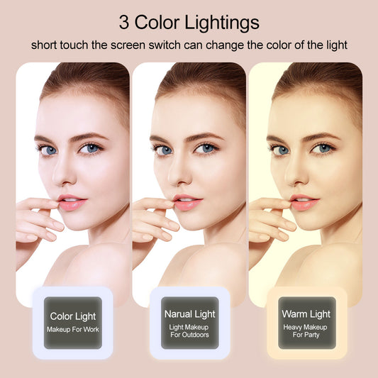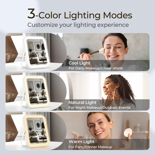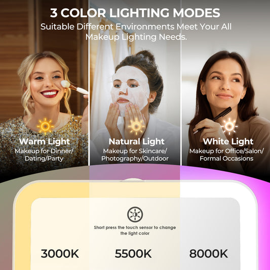 Ouwald Makeup Mirror with Lights, 8x10" Lighted Vanity Makeup Mirror with 3 Color Dimmable LED Lights & Touch Control, 360° Rotation Portable Makeup Mirror for Travel/Home