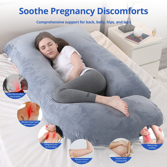 Ouwald Pregnancy Pillow, U Shaped Full Body Maternity Pillows for Sleeping with Removable Cover, 70 inch Grey