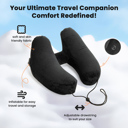 Ouwald Inflatable Travel Pillow - H-Shape Inflatable Neck Pillow for Travel - Neck Support Travel Neck Pillow for Airplane Travel Pillow with Hood Hat, Black