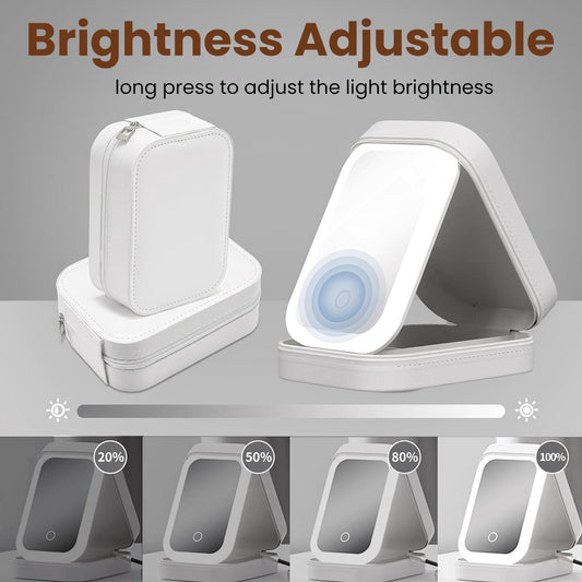 Ouwald Makeup Mirror, 1500mA Rechargeable Vanity Mirror with Lights 92 Led, Portable 10'' Travel Lighted Makeup Mirror with 10X Magnification Mirror, White