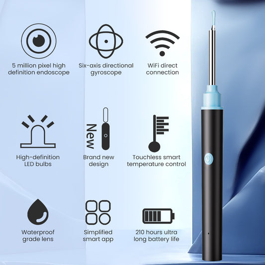 Ouwald Ear Wax Removal Kit, Ear Cleaner with Camera, 5 Megapixels 1080P Ear Scope, Wireless Otoscope Ear Cleaning Kit with Lights and 6 Replaceable Ear Scoops for Ear Cleaning