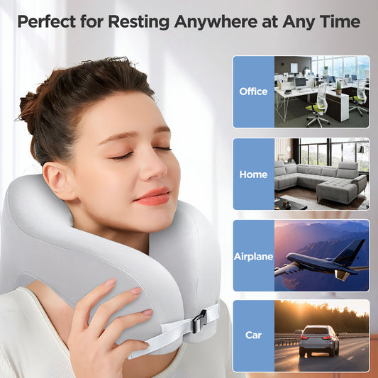 Ouwald Travel Pillow, Memory Foam Travel Neck Pillow, 360° Head & Neck Support Neck Pillow for Traveling, Car, Home, Airplane Pillow Sleeping, Grey